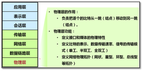 Layer1物理层:物理层标准规定了信号、连接器和电缆要求、接口类型、线缆类型、设备(集线器hub)。