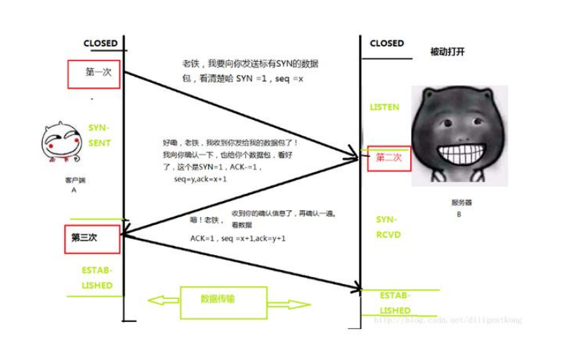 注意:传输数据包,没有真正数据信息(三次握手过程),传输数据过程,在三次握手之后。