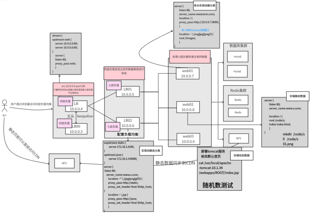 • :two: LB02服务器配置了动静态分离,当用户想要访问,网站下面的图片的时候,LB02会将请求分配给地址池内符合动态/静态条件的web服