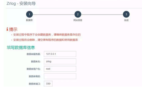 如果配置了数据库远程授权部分省略直接创建zrlog库即可