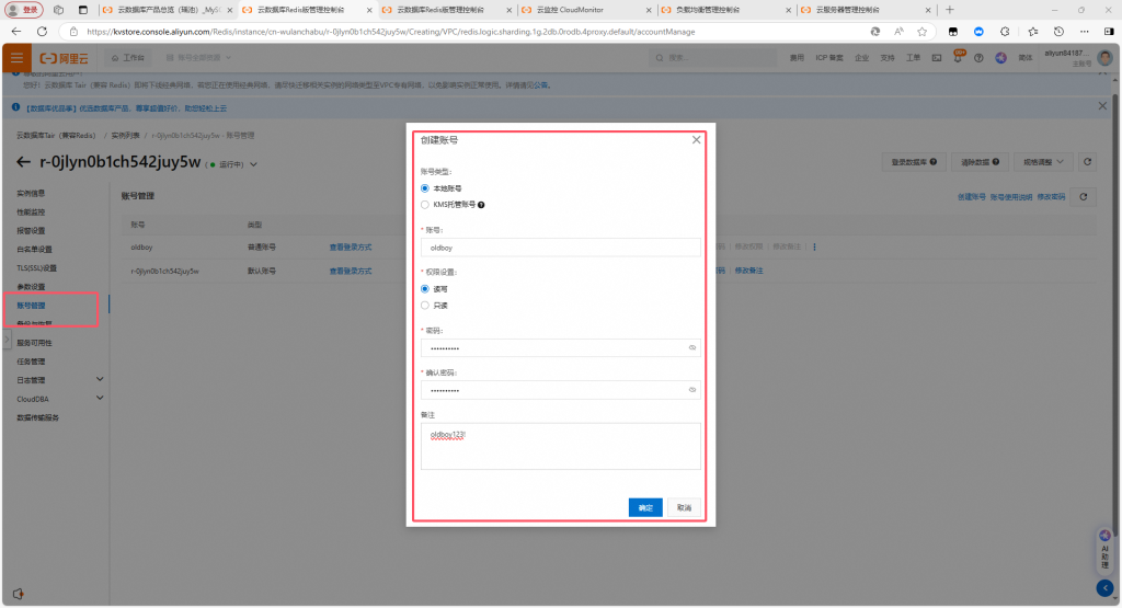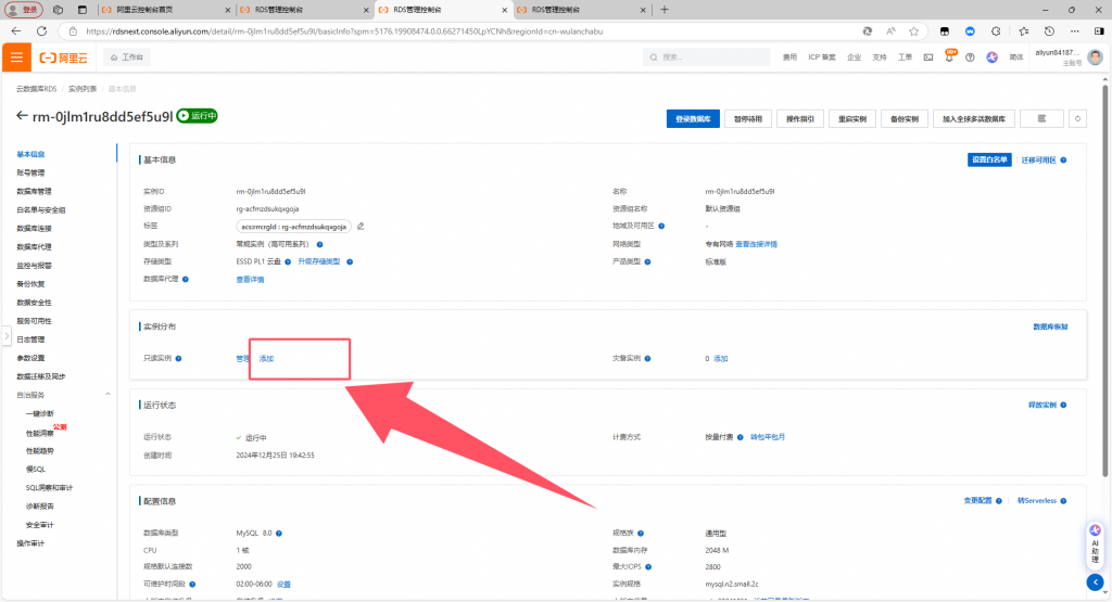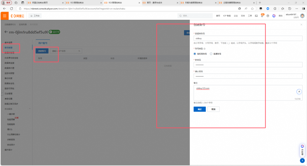 rm-2zea2795fzoaqwqlj35890.mysql.rds.aliyuncs.com - 配置用户名和密码