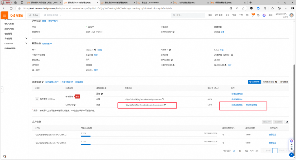 - 说明,这个是集群redis,这个地址是负载均衡入口,千万别连右边单台申请地址,那样集群就没有意义了