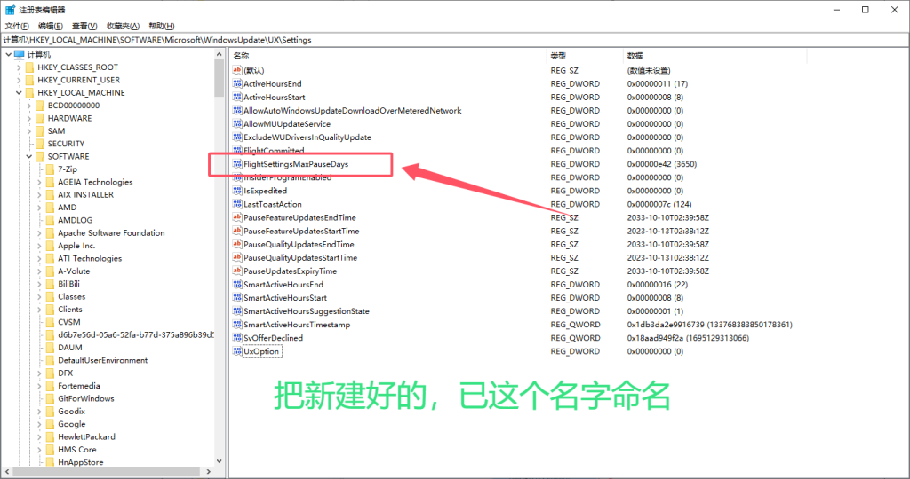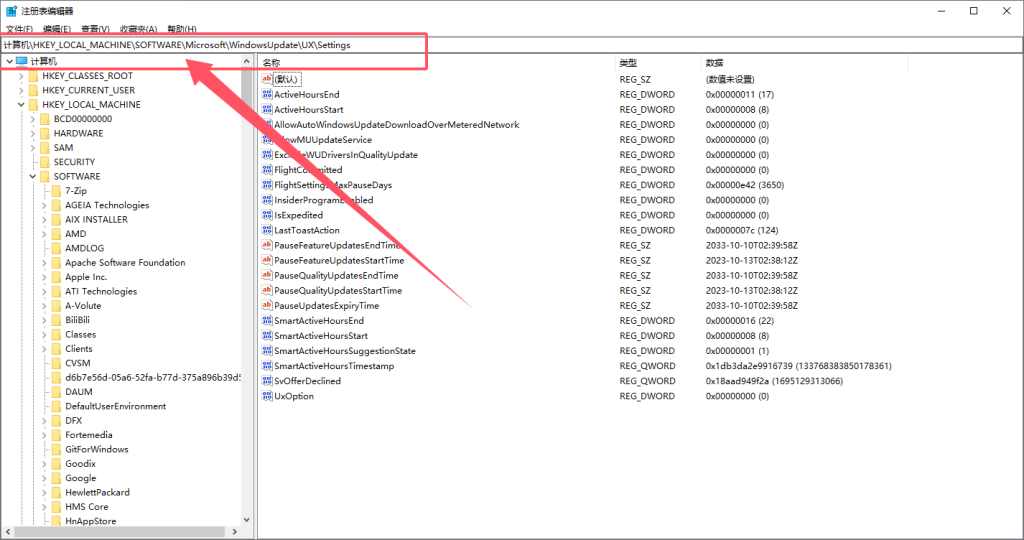 - 计算机\HKEY_LOCAL_MACHINE\SOFTWARE\Microsoft\WindowsUpdate\UX\Settings