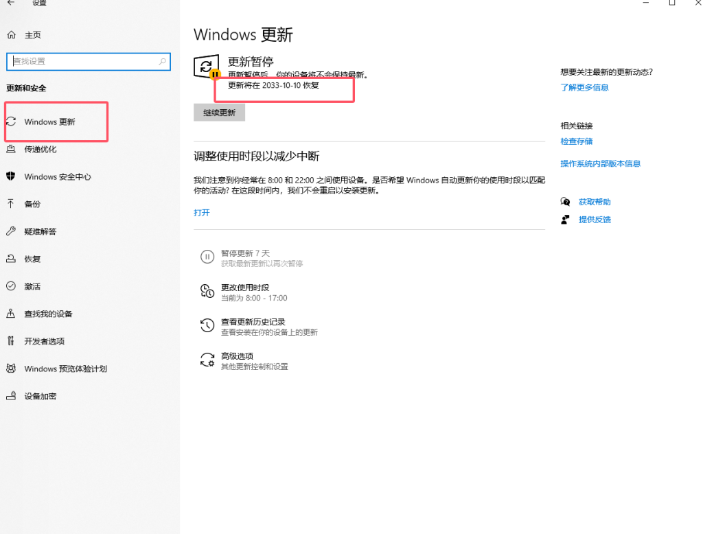 5.在windows更新里设置延迟10年后更新,即可