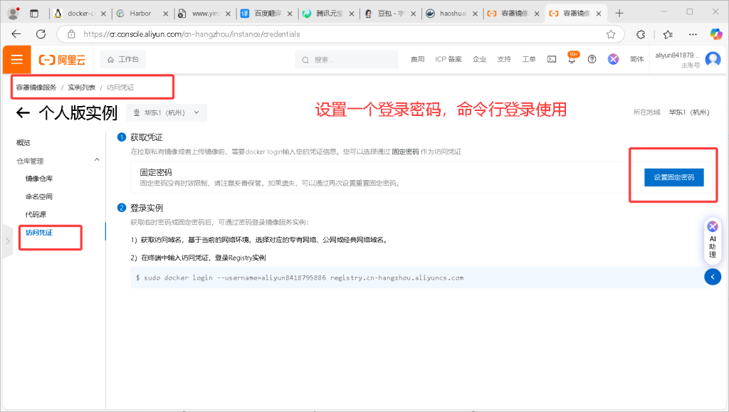 WARNING! Using --password via the CLI is insecure. Use --password-stdin.